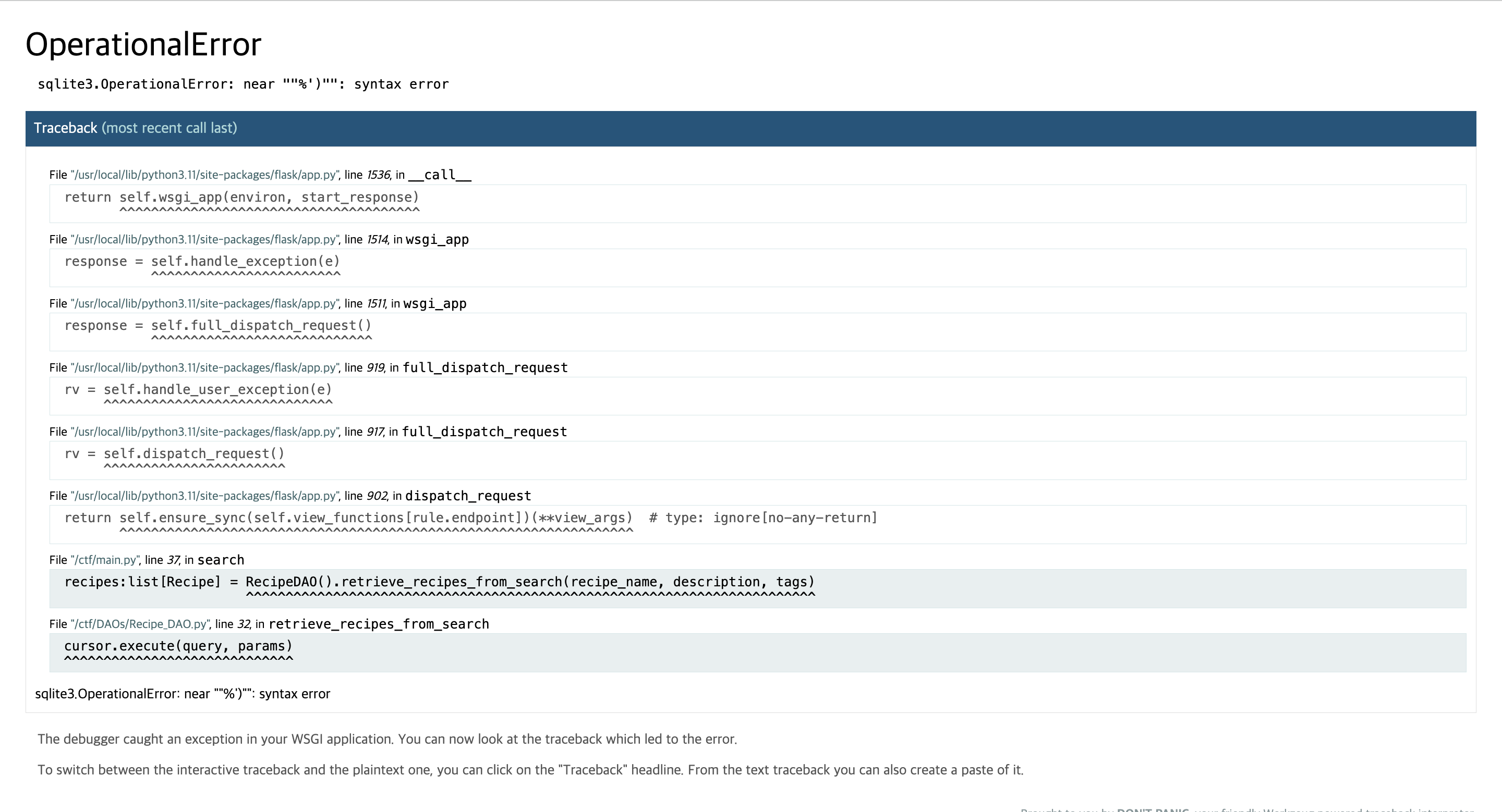 sqlite3.OperationalError: near ""%')"": syntax error